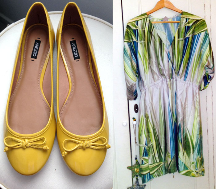 VESTIDO – E falando em persistir, olha aí uma prova de que quando quero muito algo, eu consigo, hahah! Em 2011 tivemos a tão saudosa coleção da Stella McCartney para C&A e eu desdenhei várias coisas por falta de grana. Depois me arrependi, lamentei, fiquei inconsolável ao constatar que aquela qualidade não voltaria às araras. Depois lembrei dos brechós e brechós online e fiquei catando por dias os produtinhos que estivessem com o melhor preço…BINGO! Qual não foi minha alegria ao ver essa beleza de vestido de seda da coleção por 75 realidades, frete grátis, no Enjoei! 😀