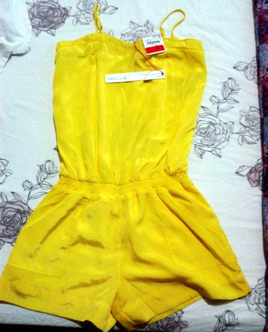“Olá Ana! Passeando no shopping Center Vale de São josé dos Campos no sábado, entrei na C&A e enlouqueci. Várias peças da Dress To com desconto de até 60%. Levei pra casa esse macaquinho amarelo lindissimo, que vestiu maravilhosamente bem, de $79,90 por $49,90.”