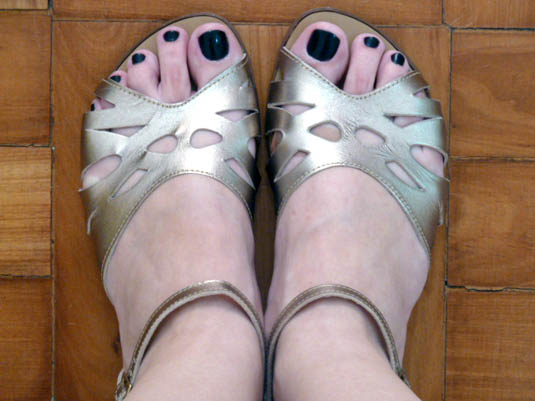 “Oi, Ana!!! Como te disse no outro dia, mando um achadinho da Sonho dos Pés. Essa sandalinha prata acomoda super bem o pé, é confortável e custou apenas 55 crucrus na loja do Barra Shopping. Conto onde foi porque a minha mãe procurou em outras lojas e não tinham recebido este modelo. Nas cores prata, dourada e bege. Super confortável, já usei duas vezes. Recomendo!”
