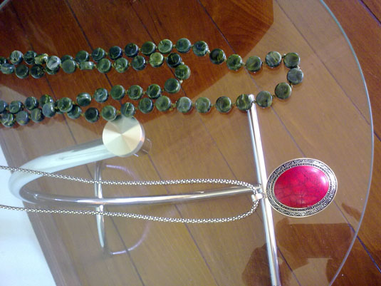 Moro em BH e aproveitando o finalmente das liquidações, achei na Pink Biju umas peças incríveis, a preços bacanérrimos: o camafeu vermelho – R$6,00, o colar verde de 02 voltas – R$13,00, o colar com as pérolas – R$9,90 – o máxi colar com pedras cinza/preto – R$10,00 – o colar com pedrinhas verdes degrade, duas voltas – R$5,00 – brinco com pedrinha preta – R$4,00 – brinco com pedrinha de madrepérola – R$5,00, brinco com pedra azul – R$19,99 e brinco prateado – R$12,00. Com o inverno chegando e os “50 tons de cinza em alta” garimpei esta calça na loja Mercada da Moda (Rua Araguari), por módicos R$20,00, o que foi um achadão, pois não precisou de ajuste nenhum, olha que tudo! E por fim, esta batinha de viscose, fresquinha na JEY do Diamond Mall, por R$39,90. Espero que goste. Beijos.”
