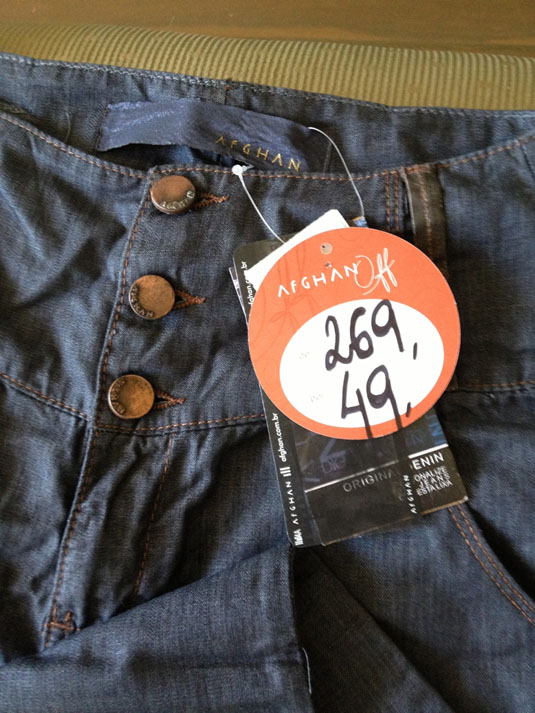 E para fechar com chave de ouro, a queridona Leila Fonseca mandou pelo facebook o seu achado: uma calça jeans de cintura alta remarcada para 49 reais…adorei!