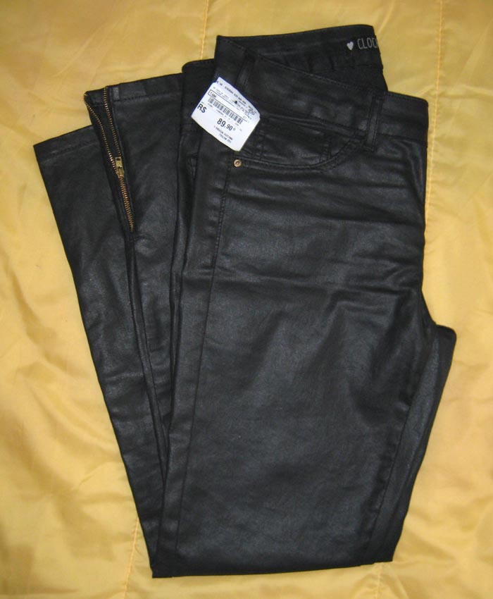 Calça de couro café com ziper na barra C&A – de 119.90 por 29.90 (pena que na foto não mostrei mto os detalhes, mas parece couro verdadeiro e morri com o preço.. rs)