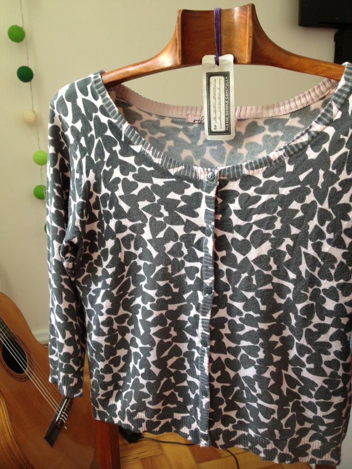 Essa mesma estampa de corações pretos do cardigan já foi vestido na H&M. Deve ser do mesmo chinesinho. Reconheci de imediato pq eu comprei o vestido há uns 2 anos atras. Confiram aqui: