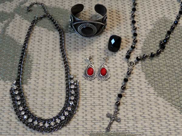 Maxi colar 15,00 \ Colar longo crucifixo 10,00 / Bracelete 5,00 / Brincos 5,00 / Anel 5,00″