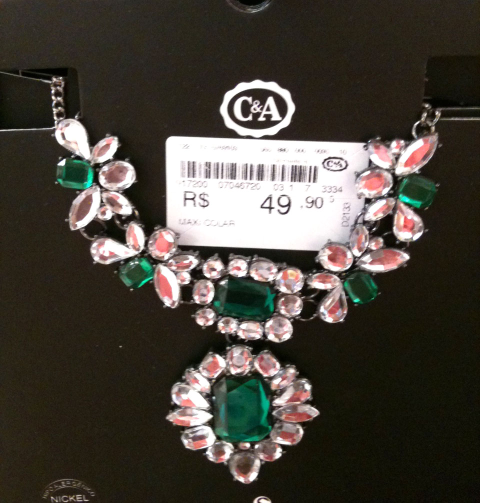 Hoje eu começo com o meu achadinho! Uma leitora tinha comentado no meu look com o colar verde da Zara que a C&A tinha um modelo que lembrava ele. Pois bem, dando um giro pela C&A do Shopping Nova América ontem, encontro o tal colar! Custa 49,90, para quem quiser um, fica a dica!