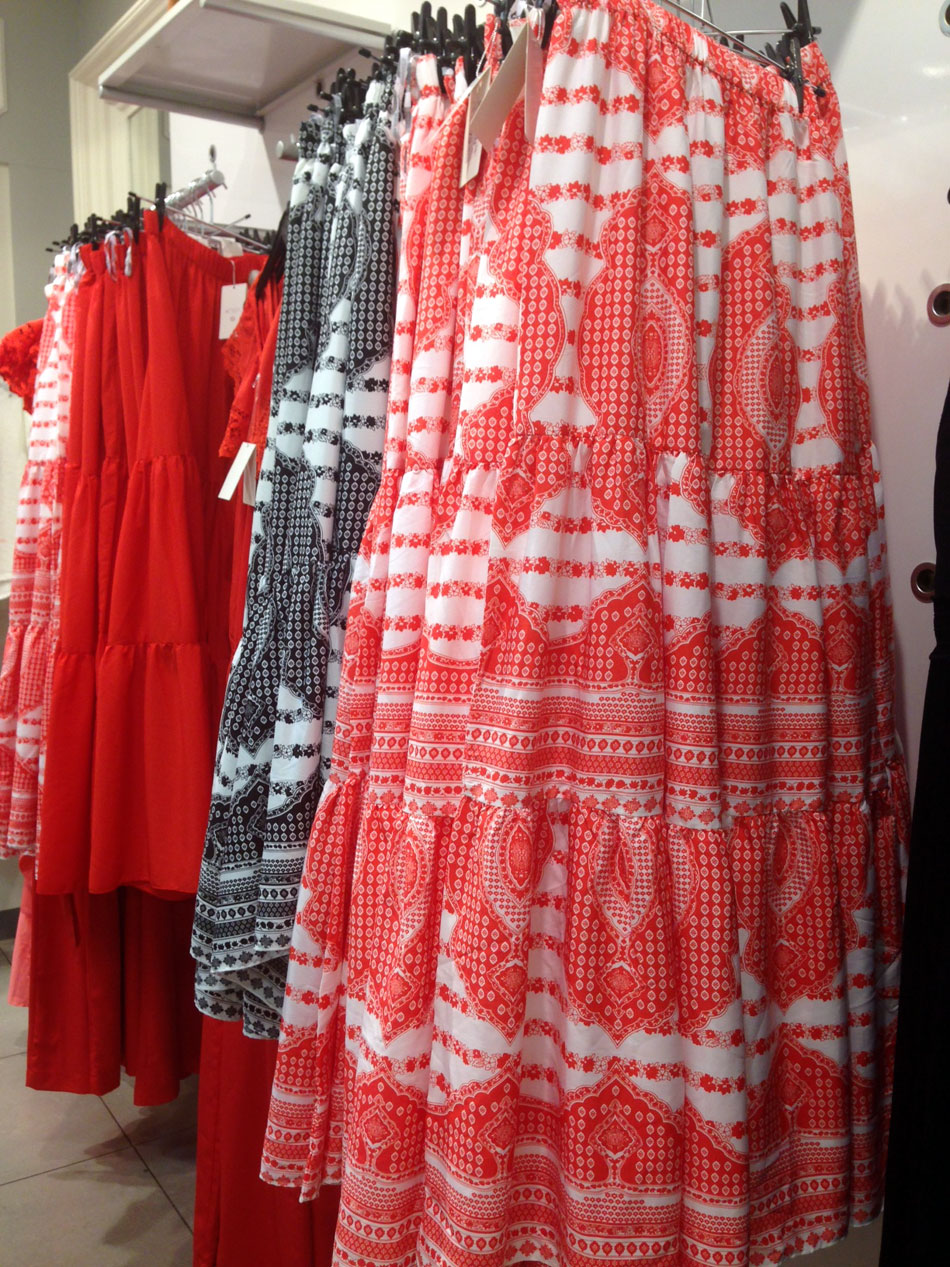 As saias estampadas são lindas, mas lembrem-se que esquentam pois são de poliéster…estavam por 79,90 – será que baixam mais?