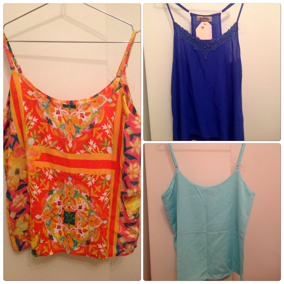Descobri o blog há um tempinho e gostei,só não tenho o costume de cimentar muito. Achei essas 3 blusas de alças que a amiga comprou no centro do rio,vertical shopping.todos os achados bem bacanas.