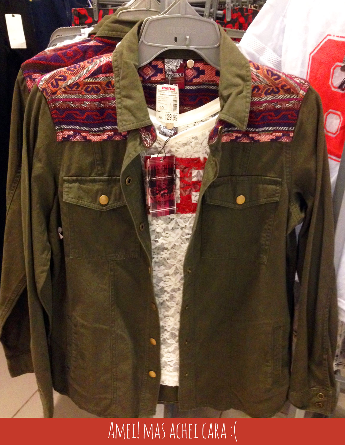 Eu achei essa camisa estilo parka uma graça, mas quando vi o preço quase caí pra trás: 130 reais!