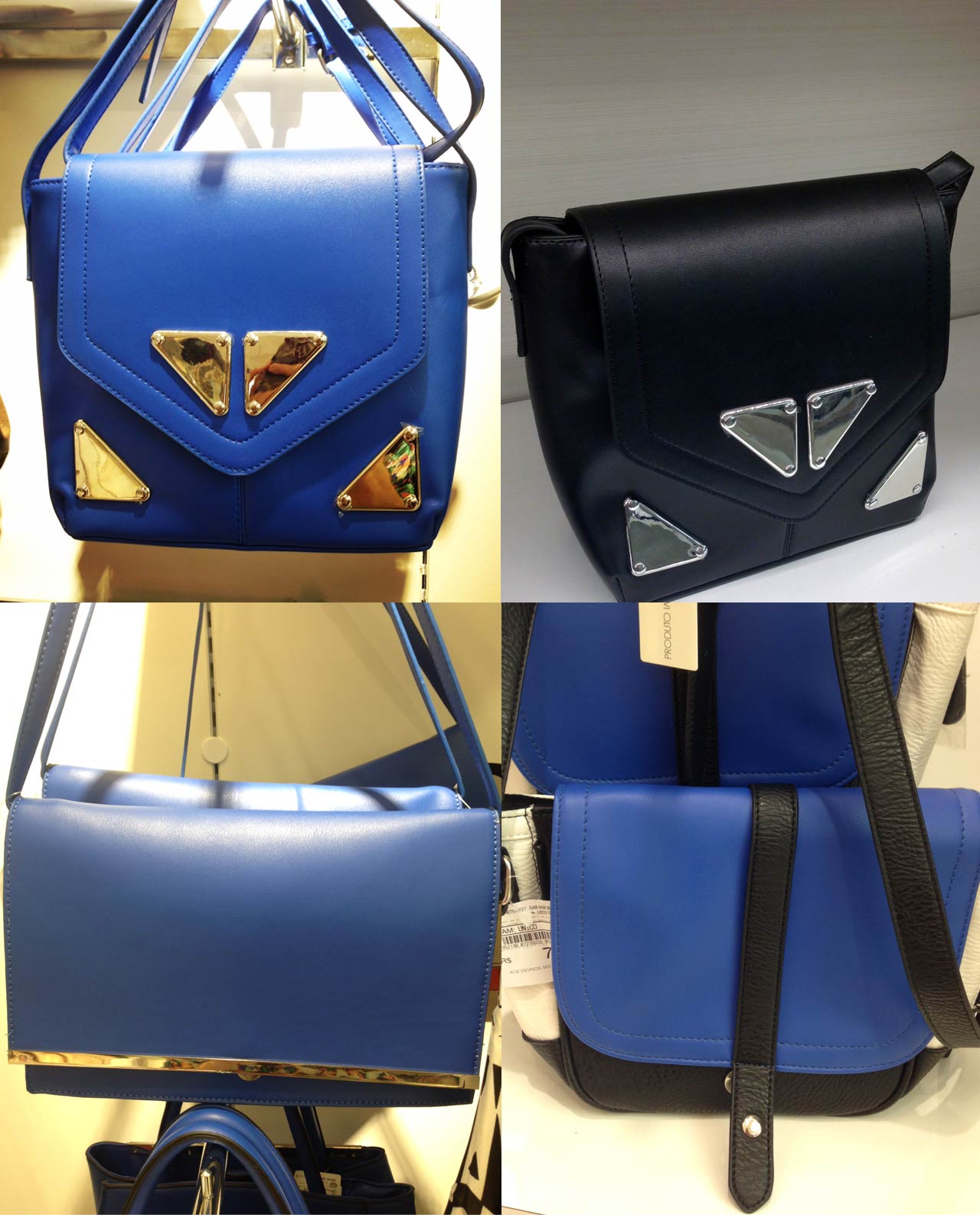 Postei essa primeira bolsa azul no instagram e teve gente que amou, teve quem achasse caro pro tamanho que é, ou que o couro grita que é fake demais…bom, ao vivo eu curti. Achei que engana bem, haha, e o modelo é diferente! Também gostei que a seção de bolsas e acessórios está tomada de azul, uma das minhas cores preferidas! 🙂 As bolsas custam em média 79,90.
