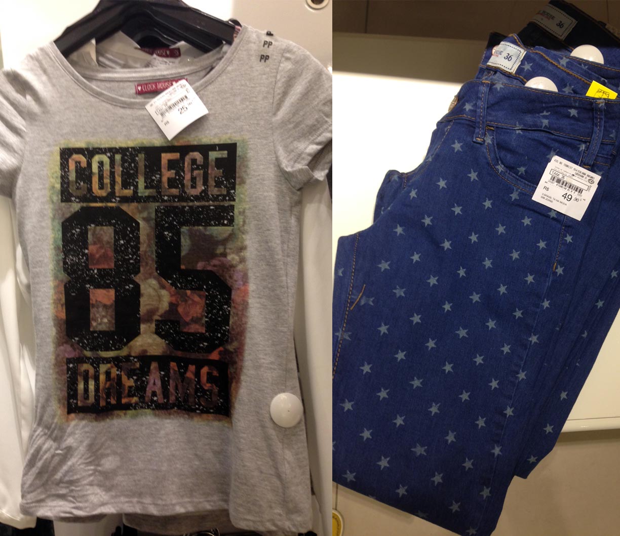 Adorei a calça de estrelinhas, mas não tive tempo de experimentar! E o preço bem digno, 49,90. Não sei se é daqueles jeans que laceiam muito…e a t-shirt também é ok, só fotografei porque era uma com um preço mais “baixo”: 25,90. De repente com um blazer por cima ela ficaria interessante!