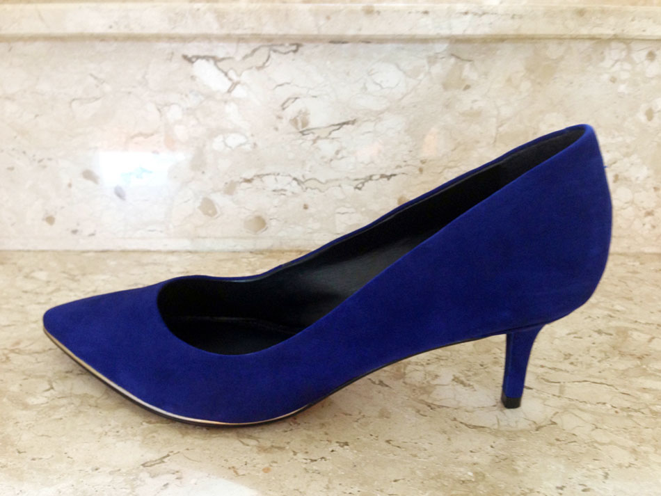 Não tive tanta sorte, comprei uma sapatilha com carinha de mocassin (mais cavada) azul royal do tom desse scarpin da foto, lindona… Por R$99.