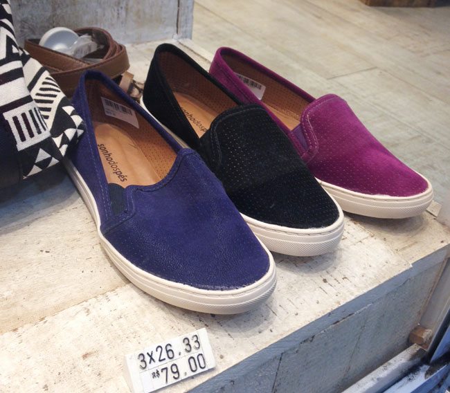 Na Sonho dos Pés também tem modelitos de slip-ons, mas furadinhos e com cores mais invernais por 79 reais. Gosto quando vejo looks coordenando os slips com vestidos e saias, muito mais do que com calças jeans.