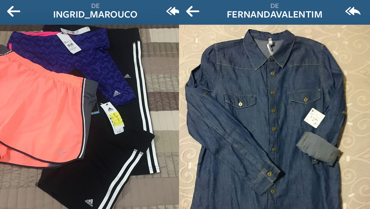A Ingrid Marouco volta à tag com mais achados, dessa vez esportivos. ela disse que só está comprando o que custa menos de 50 reais, por isso fez a festa com o short laranja da Nike por 35,90, as bermudas da Adidas por 29,90 e 39,90 e a corsário no limite, por 49,90 – tudo isso no Shopping Nova América! Já a Fernanda Valentim finalmente achou sua camisa jeans – foi na Renner e custava 59,90, mas ao passar no caixa, a grata surpresa: tinha baixado pra 39,90! Que maravilha!