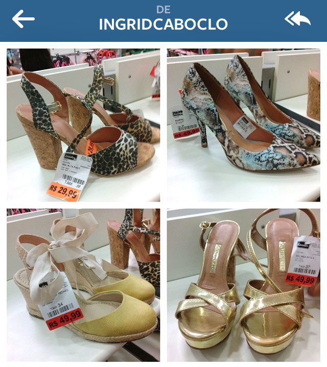 A Ingrid Caboclo enviou pelo instagram váááários achados de sapatos fotografados na Leader e C&A! Os achados foram na loja de São Gonçalo: