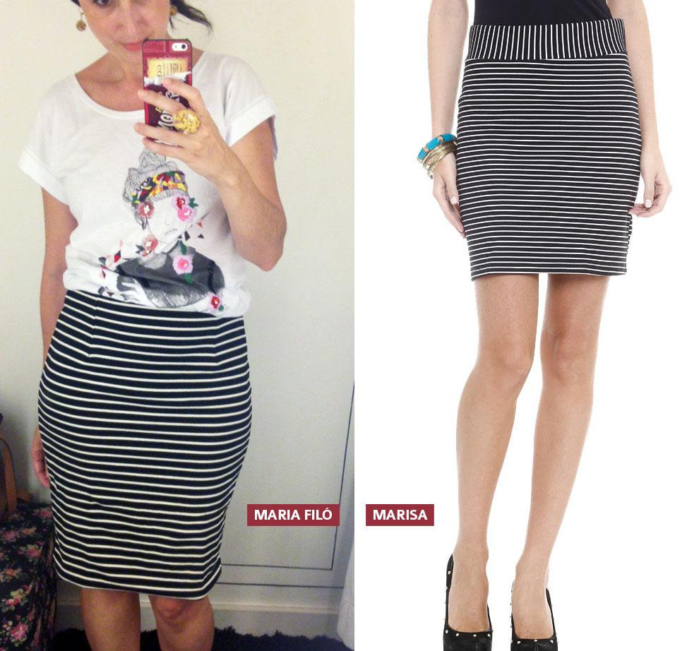 Claro que o modelo da Maria Filó é mais chic, o material dessa da Marisa deve ser mais fininho, mas resolvi literalmente pagar pra ver já que algumas leitoras comentaram que gostariam de ver um post no blog com dicas pra usar essas saias listradas! Vamos então atender ao pedido delas em breve 🙂