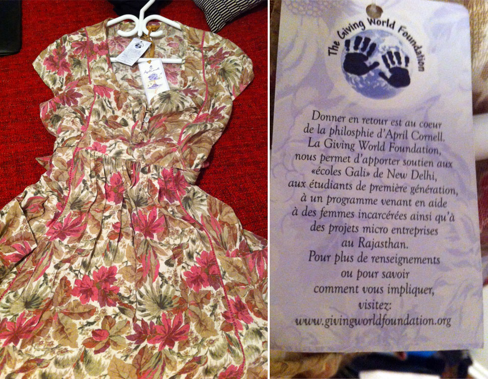 Estava com minha sogra, marido e prima aproveitando uma sexta-feira maravilhosa de sol na cidade de Hudson, entramos numa lojinha (dessas de bairro mesmo, estava em promoção) como quem não quer nada e acabei me encantando por um vestido. No começo achei a estampa meio “capa de sofá da tia velha”, mas ficou muito bonito no corpo! Eu sou fã de brechós e qualquer coisa que seja socialmente implicada, então imagine qual não foi a minha surpresa ao achar esse vestido que custava apenas 10 dólares??? E que associa uma causa social ???? Pirei e comprei!!! Aqui há mais informações sobre o projeto e abaixo, a foto do meu vestido florido, perfeito pro verão canadense !”