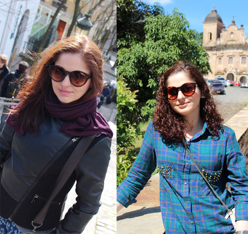 “Oi Ana! Aproveito para te enviar a foto de uma jaqueta e blusa comprei no aliexpress! A jaqueta é de couro sintético e um tecido tipo lã. É réplica de um modelo da Zara. A blusa também é uma réplica da Zara. O material é algodão. Gostei muito. Visto M no brasil e pedi G nos dois casos. Ficaram perfeitos. Bjs! Link casaco e Link blusa”
