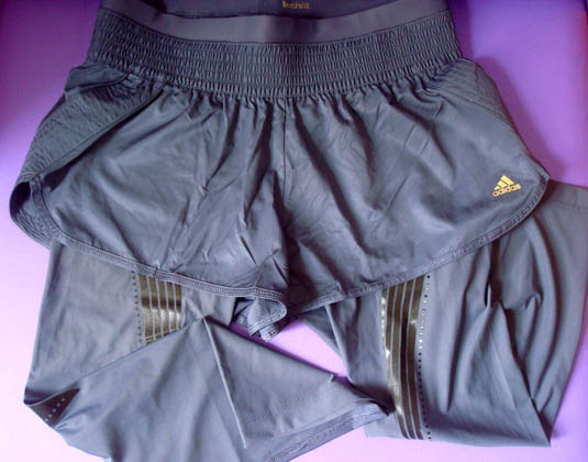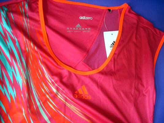 A camisa rosa foi compra do site, custou 49,90 reais e é modelo adizero, que, segundo a marca, “está encarregada da gestão da ventilação (!!) e umidade do corpo, proporcionando conforto”. Além disso possui cortes inovadores em que as peças melhoram o ajuste e conforto, dando mais liberdade de movimentos. A roxa comprei na loja, custou 35 reais e tem tecnologia dryfit, que não permite que a roupa fique empapada de suor, pois seca rapidamente, perfeita para treinamentos. As blusas são bem leves e agradáveis de vestir.