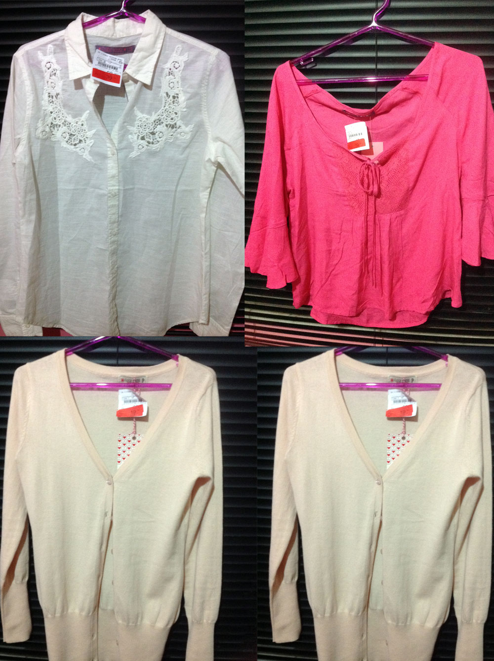 “Oi Aninha! Fiz alguns achadinhos na C&A e resolvi tirar fotos para te enviar. Amo essa parte do blog! O cardigan foi R$19,90, a blusa rosa foi R$ 29,90 e a branca R$39,90. 🙂 Beijos”