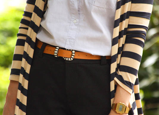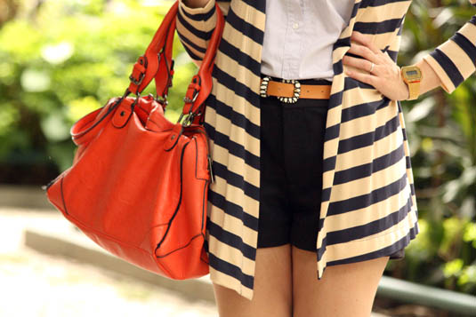 Achei lindo o cardigã mas como está estranhando por ser comprido de mais, eu – atrevidamente – sugiro passa o cinto nele. Sim, ao invés de por o cinto no short, coloque nele. Quem usa muito assim, cinto no cardigã é a Olivia Palermo.