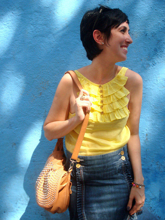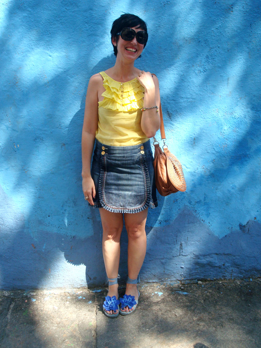 A combinação dos babadinhos da blusa, da saia e da flor na sandália fizeram o look, pra mim, um pouquinho carregado, não sabia pra onde olhar! Posso pedir uma coooisa? (:
