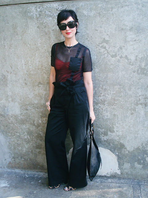 18. Adorei o visual inusitado do vermelho por baixo da transparência e a calça preta mais larguinha, que normalmente evito,me deu vontade de comprar uma igual. Muito bom esse look!