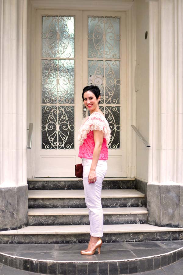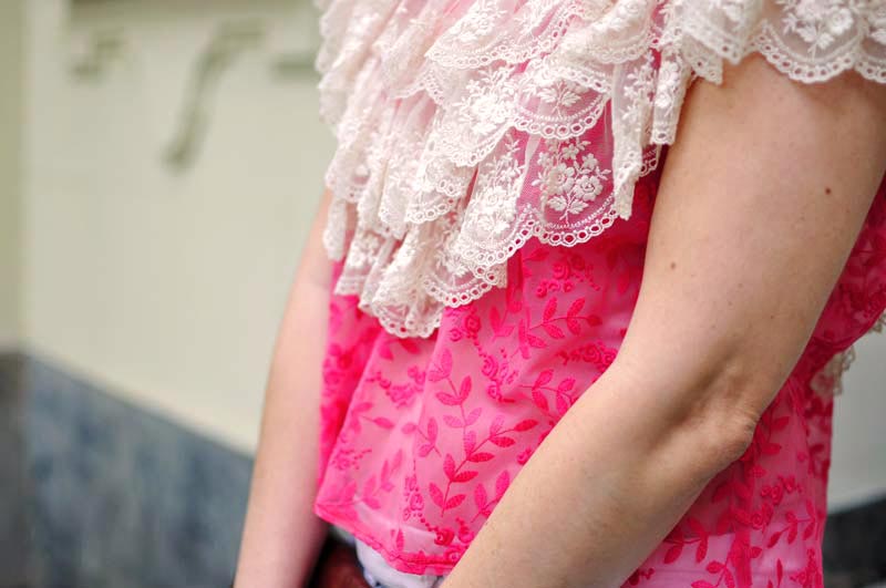 Mas acho que caiu super bem em você. Também tem outra coisa, você não acha que tanto babado com esse tom de rosa não dá uma infantilizada? Fiquei pensando nisso. Mas a blusa é muito bonita, delicada e, sabendo como usar, combina demais com o seu estilo. Como você disse uma vez “ela chega no lugar com você”, sabe? Dedão pra cima!