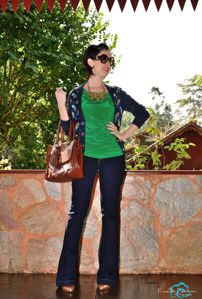 Achei uma graça! Bem gostosinho! Tentaria também com outras cores, amarelo, mostarda, laranja, … Com saia sequinha, uma em couro fake, ou até aquela branca assimétrica, … Com vestido, misturando as estampas, … Cardigã dá para usar de várias maneiras, até com short, quando refresca no fim de tarde.