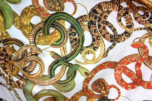 que estampa incrível! Não gosto muito de animal print e acho que jamais usaria uma roupa com a estampa de couro de cobra. Essa é linda e bem humorada, fora a referência ao Rosa que é um charme a mais!