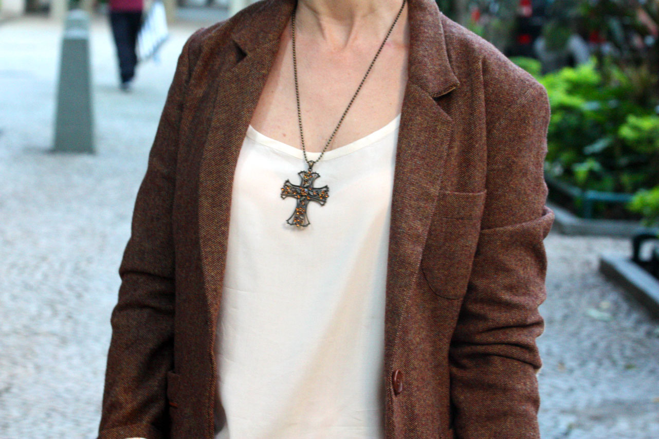 Quando fiz o curso de análise de cores para o estilo pessoal no ano passado, constatou-se o que eu já sabia: marrom era uma cor péssima para o meu tom de pele. Depois desse empurrão, me desfiz de várias peças dessa cor, mas mantive esse blazer. Não sei por que, mas dele eu gosto, apesar de só tê-lo usado uma vez.