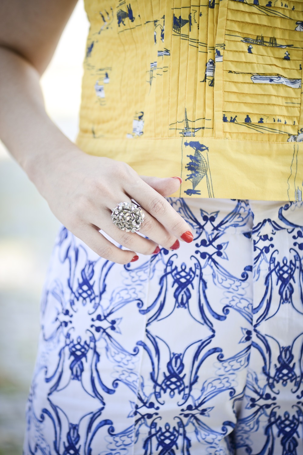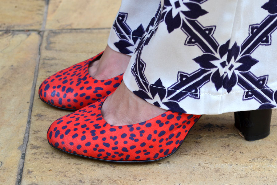 Sapatos, bolsas e lenços podem e devem participar da brincadeira! Pra não ficar com uma mistura super marcada, optei no look por colocar a print no sapato. A calça já tem uma cor bem chamativa, assim o peso visual fica mais pra baixo!