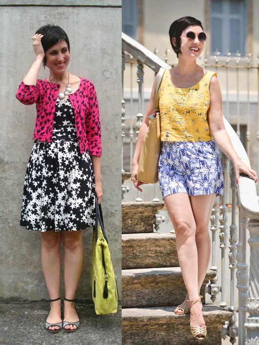 Essa é outra dica infalível! Eu pego ao menos uma cor em comum de cada estampa para que conversem sem nenhum atrito, hehe! Nas fotos de baixo tem dois exemplos: no primeiro, o preto foi a cor que fez link e no look colorido ao lado, o azu1234ranco! 🙂 Com uma cor em comum fica quase uma continuação entre elas, mesmo que sejam padronagens bem diferentes!
