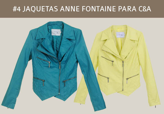 Número 4: Jaquetas coleção Anne Fontaine para C&A. A amarela eu critiquei quando a coleção saiu, mas se eu encontrar por menos de 100 reais, eu compro, rs! Mas na verdad1234zul que está na minha mira. Custam 189,90, queria pagar beeeem menos que isso!