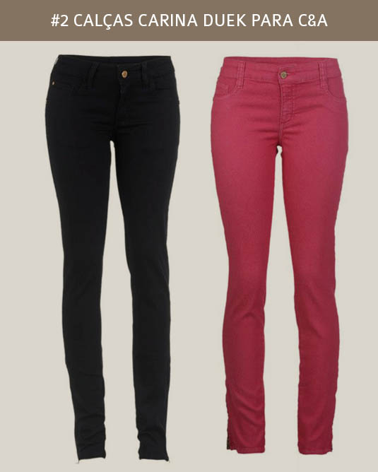 Número 2: A calça amarela ou cereja da coleção da Carina Duek para C&A. Eu AMO de paixão a minha jeans skinny, mas não quis gastar mais 100 ou 200 reais em calças coloridas. Adoro, mas a jeans valeu o investimento pois eu considero mais versátil. Custam 99 reais e estou disposta a pagar 69,90! Não vi mais a preta, mas se eu encontrar uma tamanho 40, eu levo.