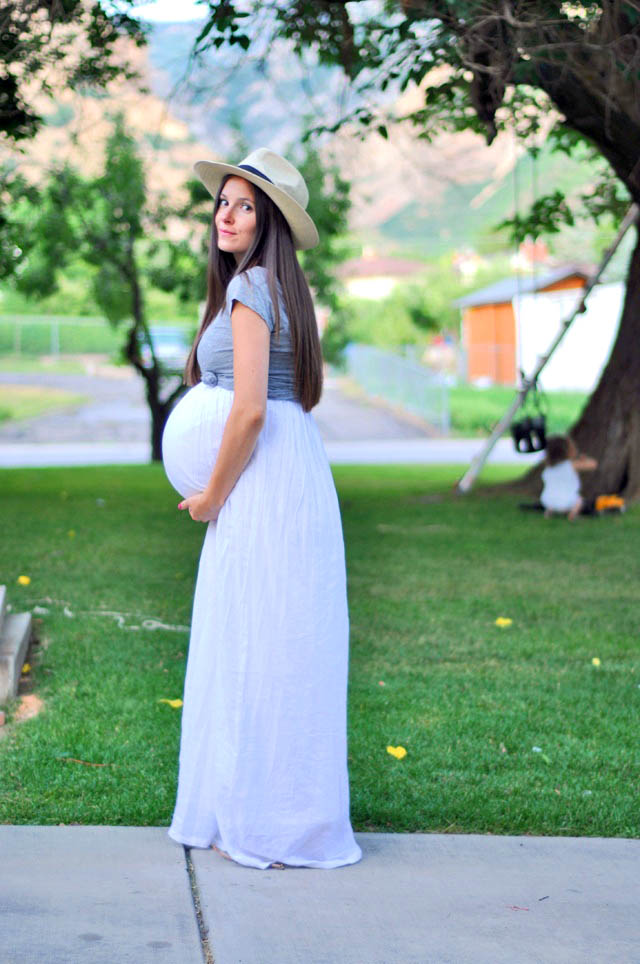 Aqui valem as mesmas ideias do segundo trimestre, mas fica um ponto de atenção – cuidado com o comprimento dos vestidos e das blusas. Você fica tão acostumada a usar as combinações que você tão bravamente conseguiu fazer nos últimos seis meses que acaba caindo no piloto automático. E às vezes não repara que o vestido ou a blusa que você usou tanto e que te deixou tão bonita tantas vezes nos últimos tempos ficaram curtos demais com o crescimento da barriga. Portanto, muito cuidado, pois caimento é fundamental!