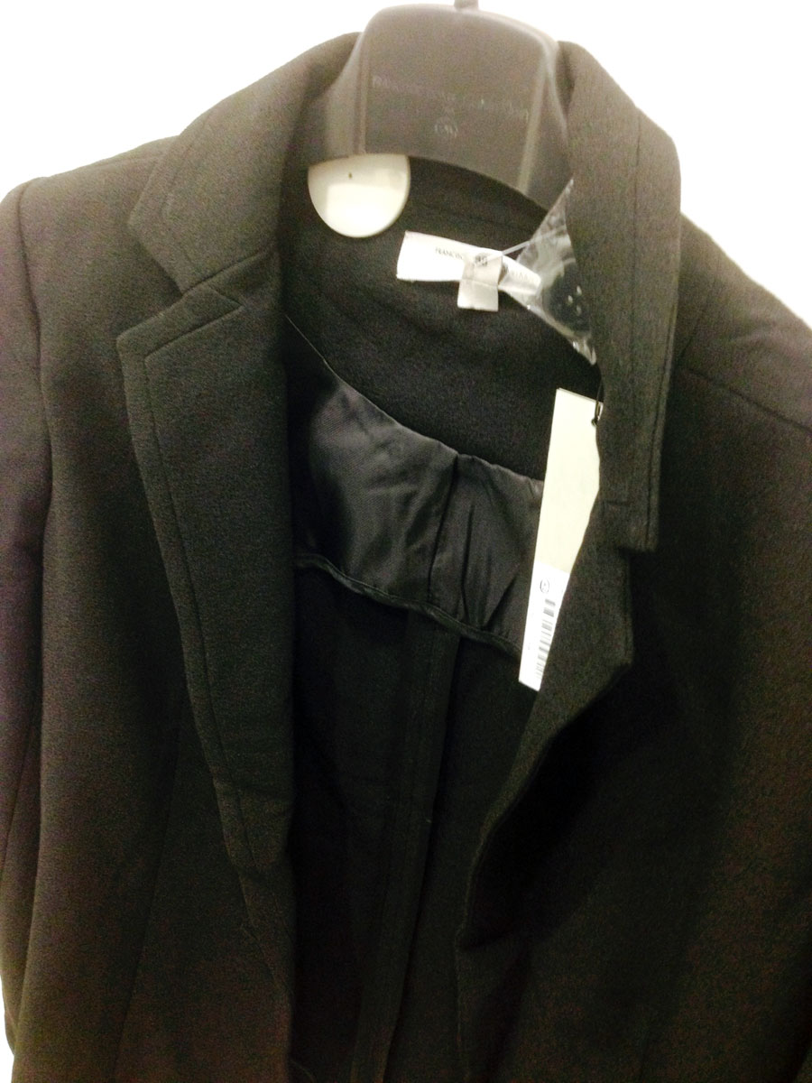 Detalhe do blazer: tecido mais grossinho, como se fosse lã, com acabamentos bem feitos e botão extra – achei a modelagem dele grande, custava 229,00. Fiquei com a impressão que esse material dá bolhinha com facilidade, sabem?