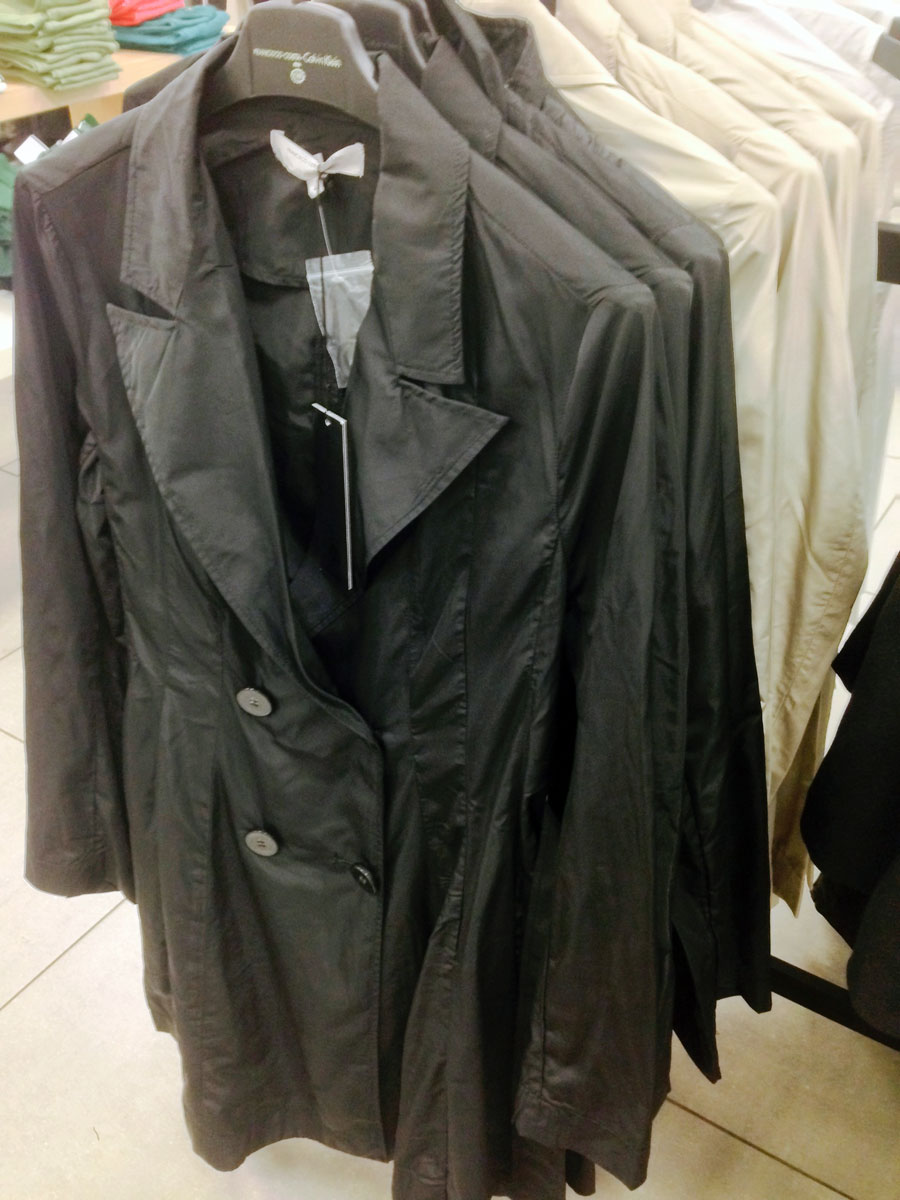 Os trenchs são daqueles tecidos que parecem ser impermeáveis, custavam 229,00.
