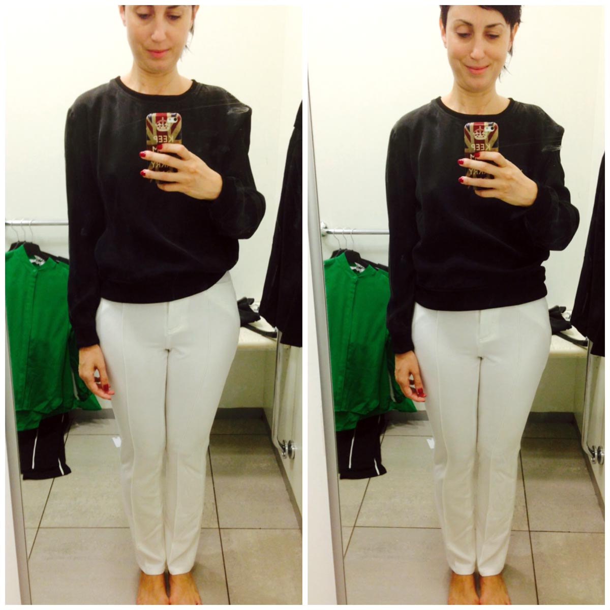 Fui na loja do Conjunto Nacional em Brasília depois do trabalho e ainda tinha muita coisa. Acabei levando um jeans ( a jegging) e uma camisa branca MARAVILHOSA.