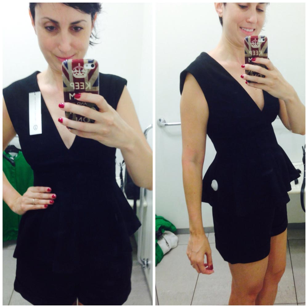 Também amei a blusa preta de peplum, e o vestido do mesmo estilo. Mas a modelagem era mínima na cintura e o vestido 36 não fechou nem a metade em mim e o 38 ficou largo em cima. Fiquei até feliz, porque ele custava 199 dinheiros!
