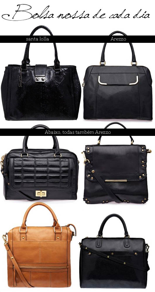 Cynthia, tb sempre achei bolsa preta uma coisa meio triste. Mas sabe que gostei muito dessas da Arezzo? O problema é o preço, haha! A dica da cor whisky é bem boa! Sim, vou catar as lojas todas em busca de peças com bons preços, hehe!