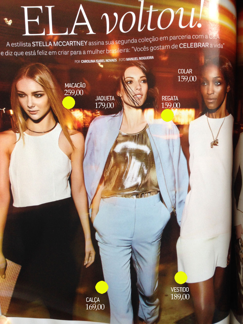 Na Vogue de outubro saíram algumas fotos das peças da coleção. Infelizmente não consegui comprar a revista pra Ipad (alou, dava erro toda hora!), corri pras bancas e fotografei do celular mesmo pra mostrar pra vocês. 🙂