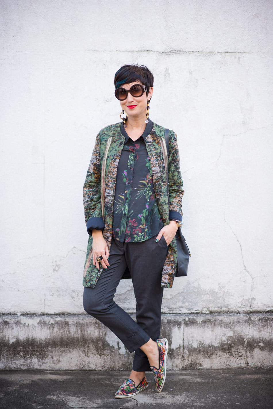 Essas duas fotos têm o intervalo de seis anos entre elas. Acima, a Ana que eu gosto de ser, essencialmente; formas mais estruturadas, mensagem forte mesmo num floral – de cores mais esmaecidas e de fundo escuro –, ao mesmo tempo em que prezo o confort1234orma.