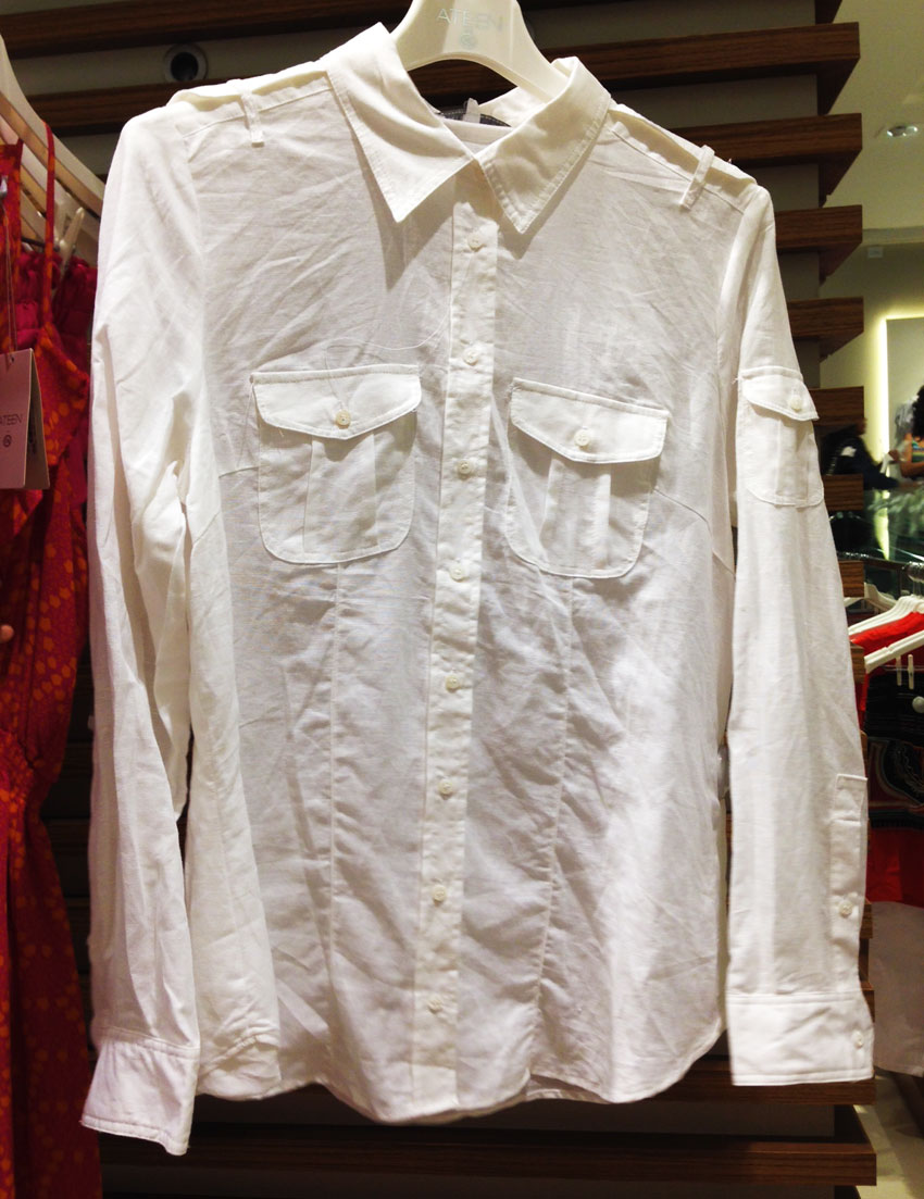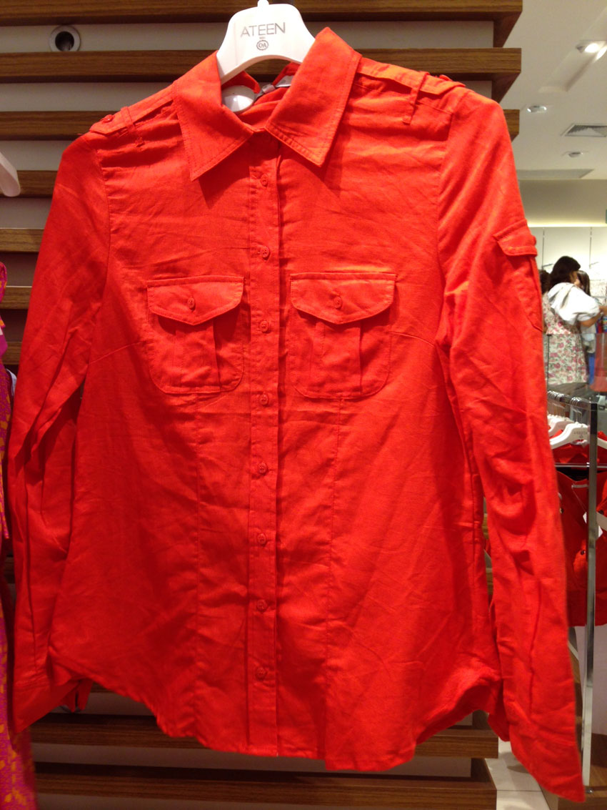As camisas de linho com viscose estavam lindas! O bom dessa mistura é que eu acho que não amassa tanto quanto linho 100%, pra quem não gosta dos amassados do tecido – eu amo! Achei a laranja mais bonita e custavam 89,90