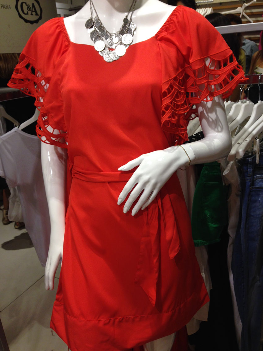 Esse vestido, por ex., é de poliéster, mas o toque era acetinado. Bonitinho, não vi o preço. Esse de baixo, longo, era lin-do, mas não vi nas araras pra saber o preço e depois que eu reparei que era a Carolina Dieckmann usando, hahaha. Ambos não fazem meu estilo, mas pra quem curte…
