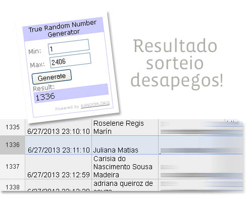 Aeeee! Vamos ver quem levou o kit com meus desapegos! O sorteio foi feito pelo site Random.org, que escolhe um número aleatoriamente.