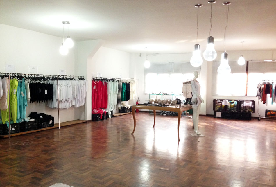 Para conhecer a loja de fábrica da Ágatha é preciso tocar o interfone e subir uma escada. A loja é ampla, bem iluminada, mas pegamos finalzinho de coleção, por isso estava peladinha. A boa notícia é que vão receber a coleção de inverno nessa segunda-feira – o único porém é que sempre tem fila na porta bem antes de abrir.Mas não vão colocar tudo no primeiro dia, aos poucos vão liberando as peças para terem novidades sempre.