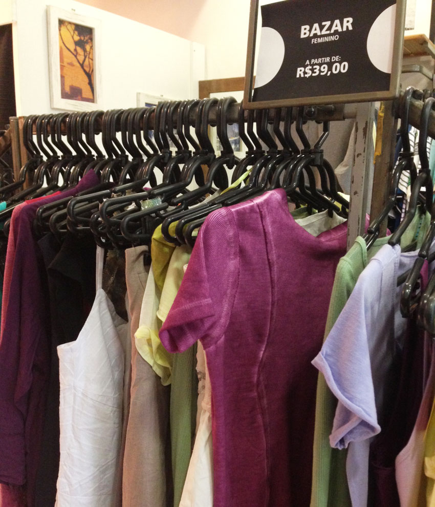 As araras são organizadas por preço, algumas peças tem micro defeitos, outras são peças-piloto. Eu vi valores de 30 a 120 reais, sendo que se você pagar em dinheiro, tem 20% de desconto!