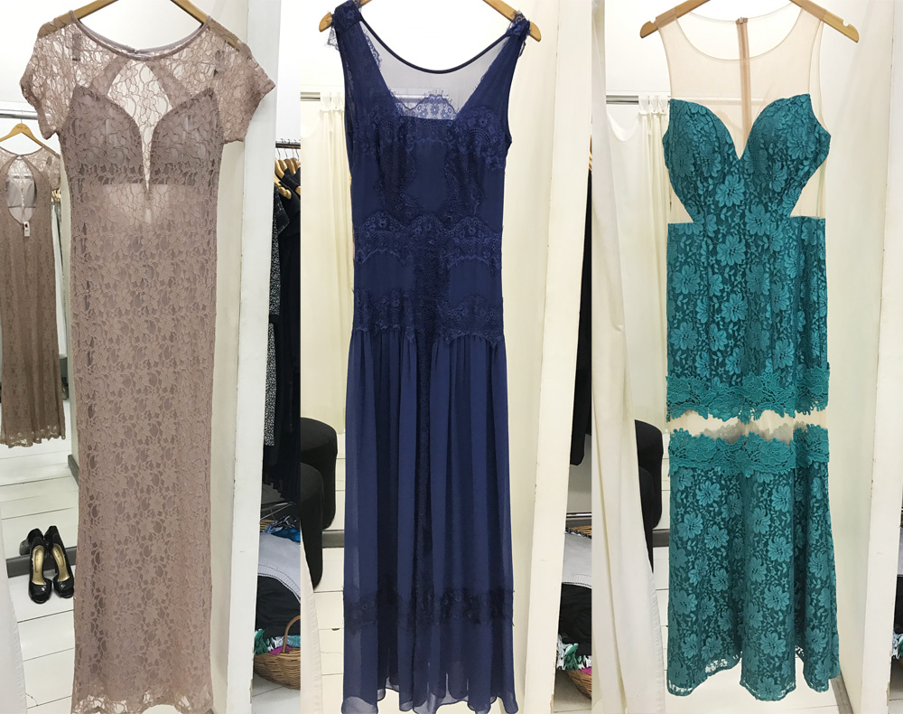 Provei alguns vestidos que não tiveram um caimento incrível porque eram um número acima, mas eu não queria deixar de mostrá-los aqui. Gostei da variedade de estilos, sendo que o que menos vi foram os bordados de canutilhos e pedrarias, elaboradões.