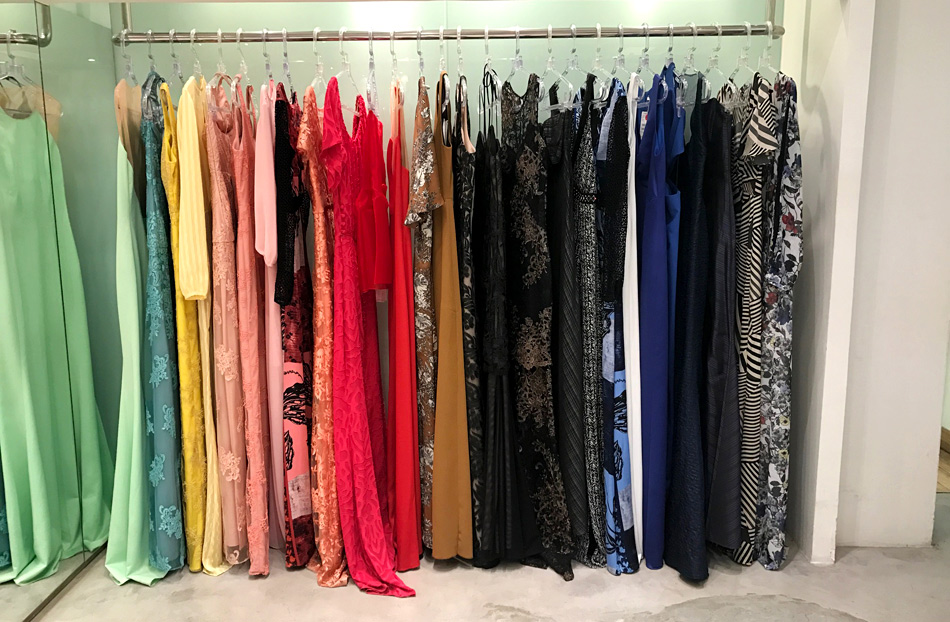 Já a loja do Centro, no Shopping Vertical, é enorme, bem iluminada e decorada, com provadores amplos, mas apresentava praticamente a mesma variedade da de Copa – só que eu precebi mais modelitos finos e elaborados por lá. Além dos vestidos de festa, também vendem a parte outlet das roupas de coleção comum.