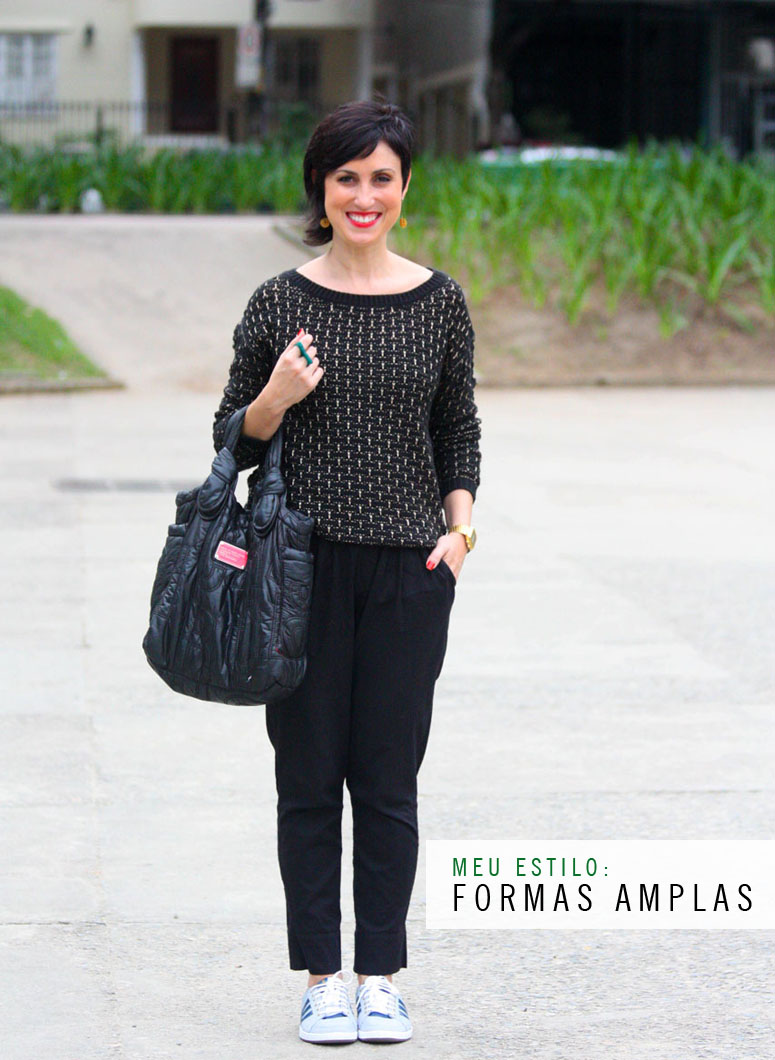 Me identifiquei muito com a parte de peças amplas, sempre recebo muitas críticas por não “precisar” usar coisas tão largas. Sempre penso em usar com um cinto e no final sempre deixo solto mesmo (tenho implicância com cintos).